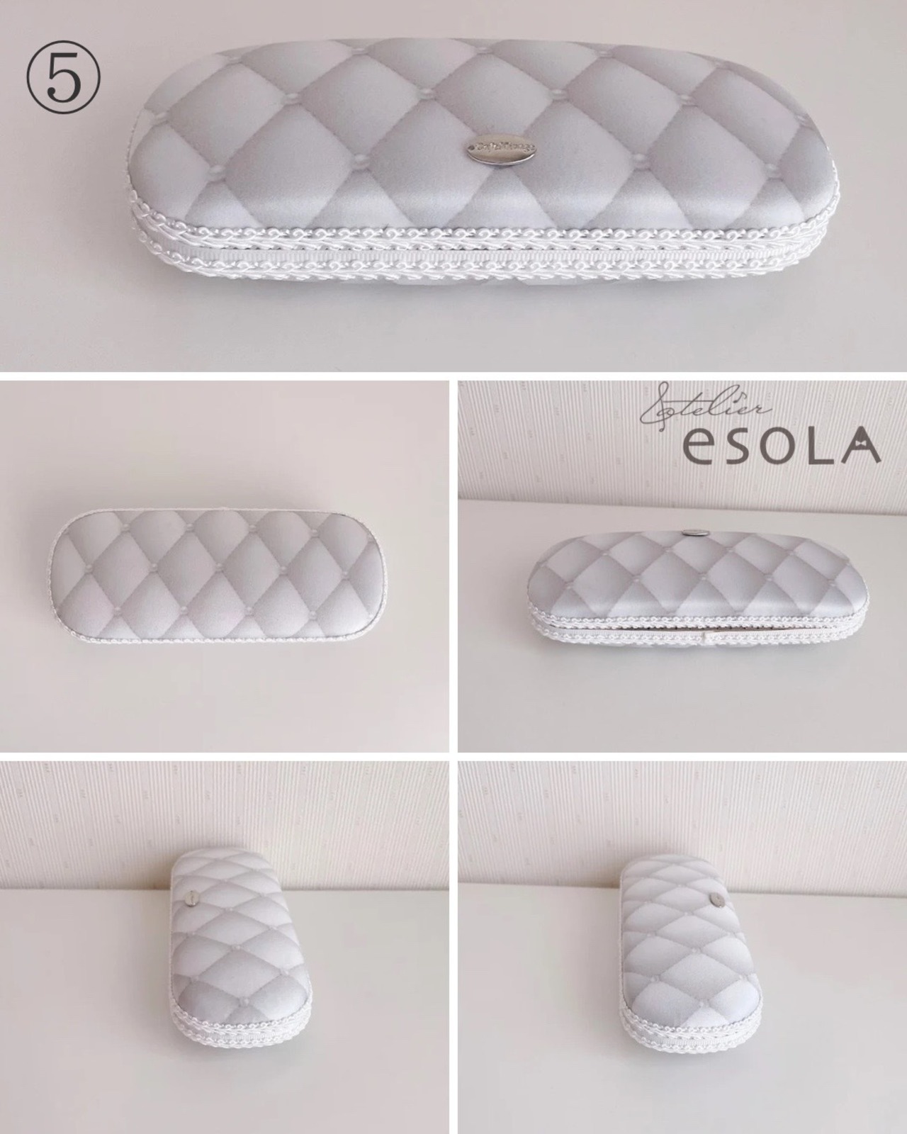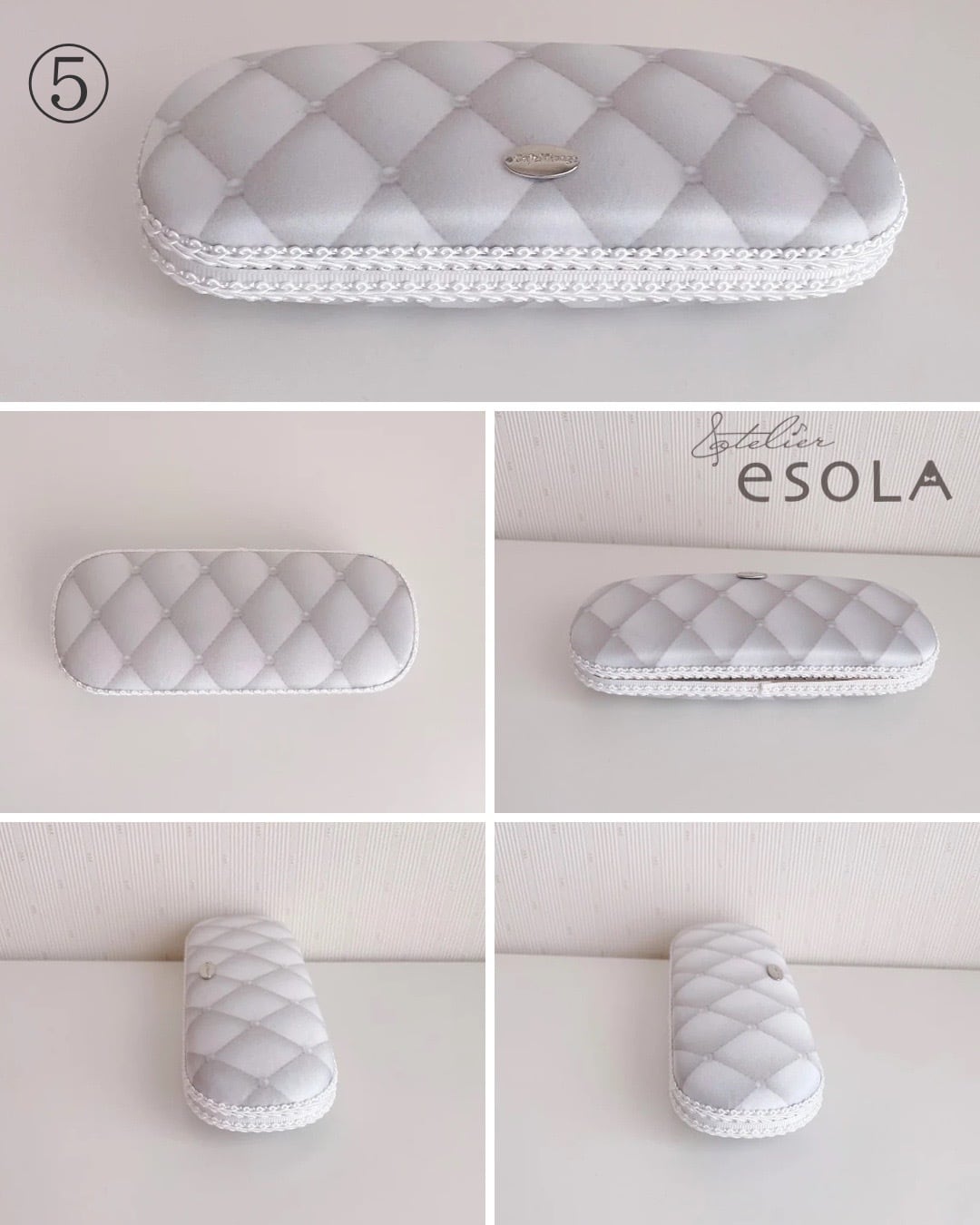 ・美しい縁取り: ケースの繋ぎ目には繊細なブレードをあしらい、どこから見ても隙のない仕上がりです。